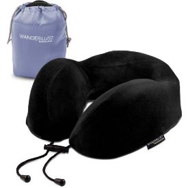 Wanderlust Travel Essentials Memory Foam Travel Neck Pillow Head Rest with Carry Bag (Black)